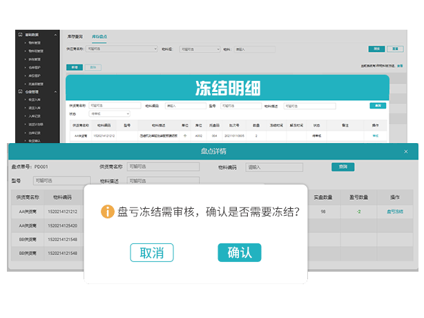 材料凍結資金盤虧